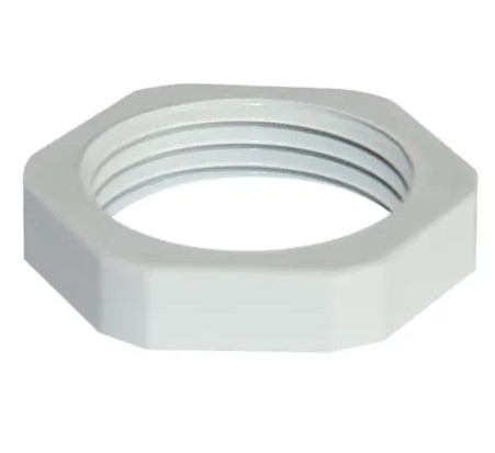 Låsemøtrik til kabel forskruning, lysegrå, polyamid, PG21 Gevind.