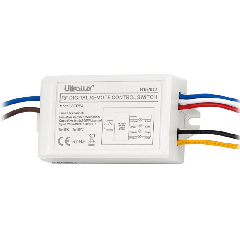 RF fjernbetjening, afbryder med 4 kanaler, 230 V AC er designet til at fjernstyre lyset, til at tænde/slukke hver enkelt kanal separat eller dem alle sammen. Det gør belysnings-systemet lettere at bruge. Senderen og modtageren har samme kode og kommunikerer via radiobølger (RF).